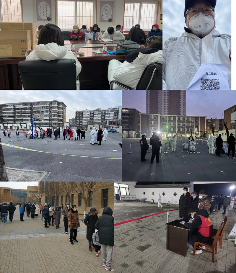 公司卢会平老师1月9日上午在永利集团官网教师公寓南门执勤,劝返出小区人员,为做核酸的人员指路,核实进小区人员身份并进行扫码登记。梅俊平老师在所居住社区进行志愿服务,维持核酸检测人员秩序,引导分流,帮助老人填写信息,并为活动不便的老年人或家庭接送菜。邹开顺老师在碧华里社区服务,在核酸检测现场维持秩序,引导大家保持一米间隔,帮助老年人填写信息。黄金栋老师服务鸿顺里街月纬路社区,在河北区新开小学在岗11小时维持核酸检测人员秩序,引导分流,帮助老人填写信息。廖帮全老师在永利集团官网核酸筛查点开展志愿服务活动,协助待检人员填报筛查信息、维护现场秩序。顾宏老师在所在社区进行扫码测温志愿服务活动,为做核酸的人员进行指导。应用物理专业1802班班长张宇同学在宝坻区大口屯镇大宝殿社区开展志愿服务活动,协助医务人员做好全员核酸检测、布置场地并进行核酸检测人员信息登记。