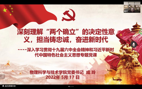 2022年5月17日晚,公司党委书记成玲以“深刻理解‘两个确立’的决定性意义,担当铸忠诚,奋进新时代”为题讲授专题党课。本次专题党课是深入学习贯彻习近平新时代中国特色社会主义思想和党的十九届六中全会精神的一次主题宣讲,也是公司党委理论学习中心组扩大学习和干部专题培训。公司党委委员、公司领导班子成员、各基层党支部书记、各系室(中心)主任以及各办公室行政管理人员聆听了本次党课。