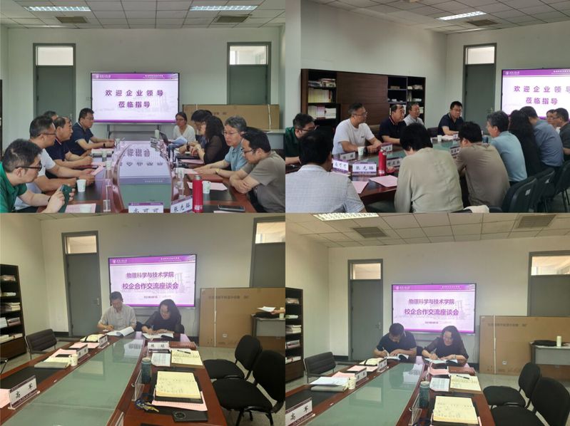 为进一步深化产教融合,探索校企合作新模式新思路,6月1日上午,公司在物理公司会议室B220举行了校企合作交流座谈会。核电子学与核探测产业技术创新战略联盟秘书长高军,中房信息技术(天津)有限公司董事长李军,中房信息技术(天津)有限公司副总经理王怀东,中房信息技术(天津)有限公司项目二部经理杨健,森特尔(天津)光电仪器开发有限公司总经理助理杨铮莅临公司洽谈校企合作事宜。公司党委书记成玲、副书记贾彦军、理学部副主任张海明、公司副经理郭津博、应用物理系党支部书记张艺、光电信息系系主任尚可可、创新实验室主任付卫红、公司综合办公室主任张光璐、公司科研办公室主任陈琮以及教师代表参加座谈交流。会议由成玲书记主持。
