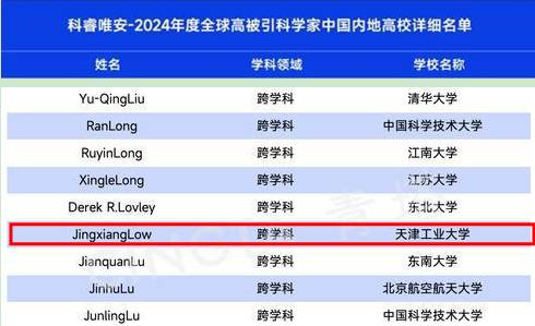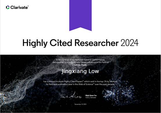 11月19日,全球专业信息提供与分析服务领域的领导者科睿唯安(Clarivate Analytics)发布了2024年度“全球高被引科学家”(2024 Highly Cited Researchers)名单,遴选全球高校、研究机构和商业组织中对所在研究领域具有重大和广泛影响的顶尖科学人才。来自全球59个国家和地区的6636名高被引科学家入选。永利集团官网总站Low Jingxiang(刘敬祥)教授入选该名单。入榜这份名单的科学家均发表了多篇高被引论文,其论文被引用频次位于同学科前1%,彰显了他们的重要学术影响力。